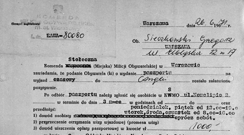 8 czerwca 1956 r. Milicja Obywatelska wydaje paszporty