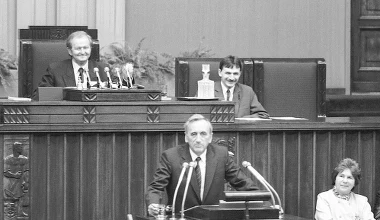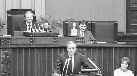 12 września 1989 r. Premier Tadeusz Mazowiecki wygłasza w sejmie exposé